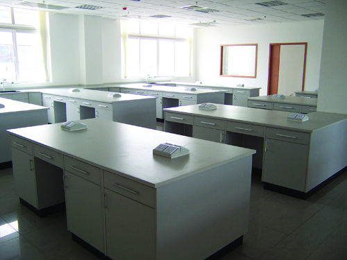 全木設計進行生物調查室進行調查臺 全木結構實驗室實驗臺主要以三聚氰氨板為主材,再配合夾板、中密度纖維板等輔材制造而成,根據國內不同地域的氣候差異,合理選用不同產地的板材,從而滿足實驗室使用要求。